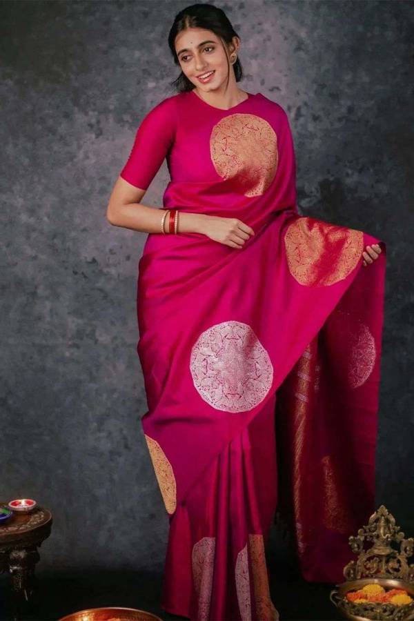 Banarasi soft silk is known for its smooth texture and lightweight feel. It drapes beautifully, making the wearer look graceful and regal. The saree is likely to feature a classic Banarasi weave, characterized by intricate patterns and designs woven into the fabric using gold or silver zari threads. Banarasi sarees come in a wide range of colors, from vibrant hues like red, pink, and royal blue to more subtle shades like ivory, beige, and pastels.